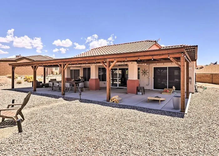 Deze 2-slaapkamer Bullhead City Oasis With Fire Pit And Mtn View! is gesitueerd op 15-minuten rijden van Laughlin Labyrinths en biedt toegang tot bezienswaardigheden in de omgeving.